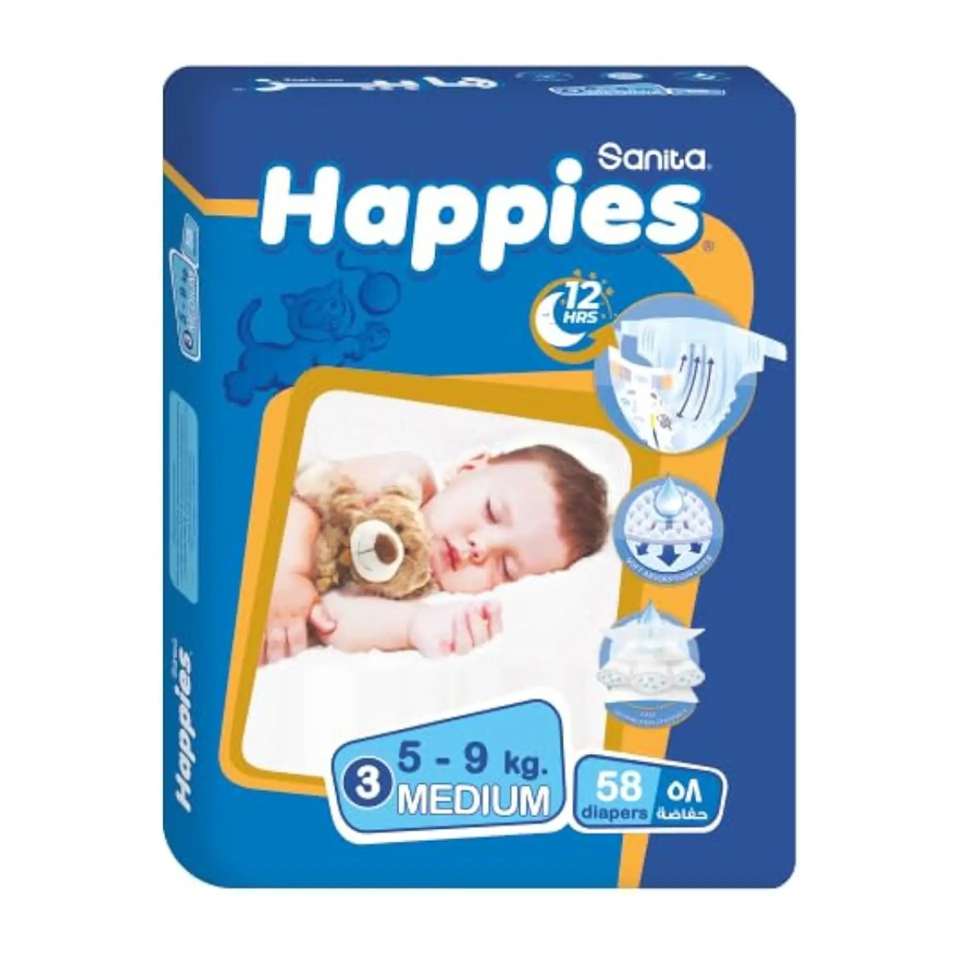 سانيتا هابيز 3 متوسط (5–9 كجم) 58 قطعة