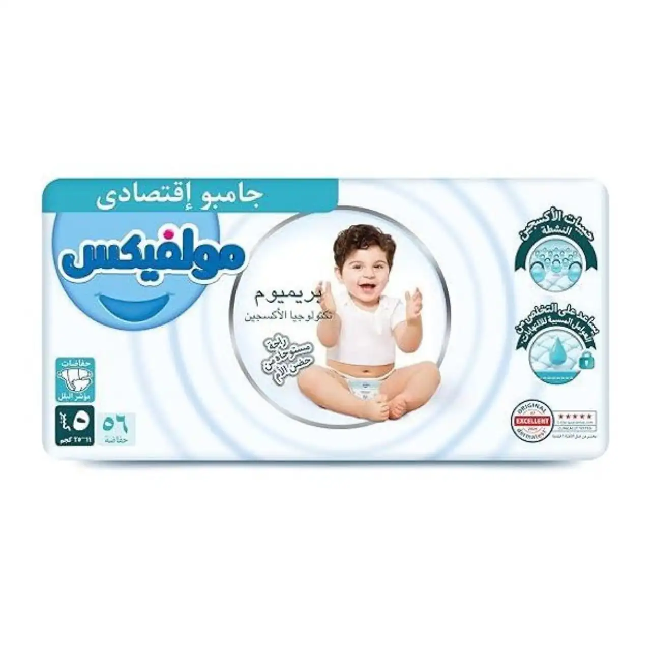 مولفيكس عنايه مميزه مقاس(5) (11-25ك) 56 قطعه | حفاضات اطفال