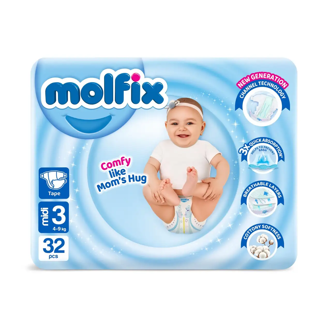 مولفيكس ميدي بيبي مقاس(3) 32 قطعه |حفاضات اطفال